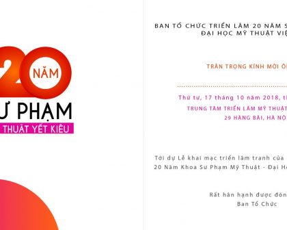 Find out moreTrân trọng kính mời quý vị và các bạn đến tham dự lễ khai mạc triển lãm của Cựu sinh viên khoa Sư phạm Mỹ thuật – Trường ĐHMTVN. Thời gian: 17:30 ngày 17/10/2018 đến 23/10/2018 Địa điểm: Nhà triển lãm 29 Hàng Bài Anh chị em Sư phạm Mỹ thuật Việt Nam tag nhau vào và share nhé 20 năm – Sư phạm Mỹ thuật Yết Kiêu ” Nhân dịp kỷ niệm 20 năm thành lập Khoa Sư phạm…